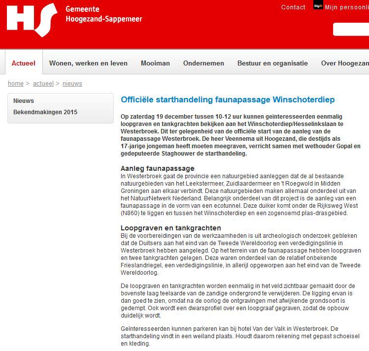 Vandaag werd de officiële start van de faunapassage Westerbroek gedaan, tevens werd daar uitleg gegeven van de daar aanwezige tankgracht en loopgraven.